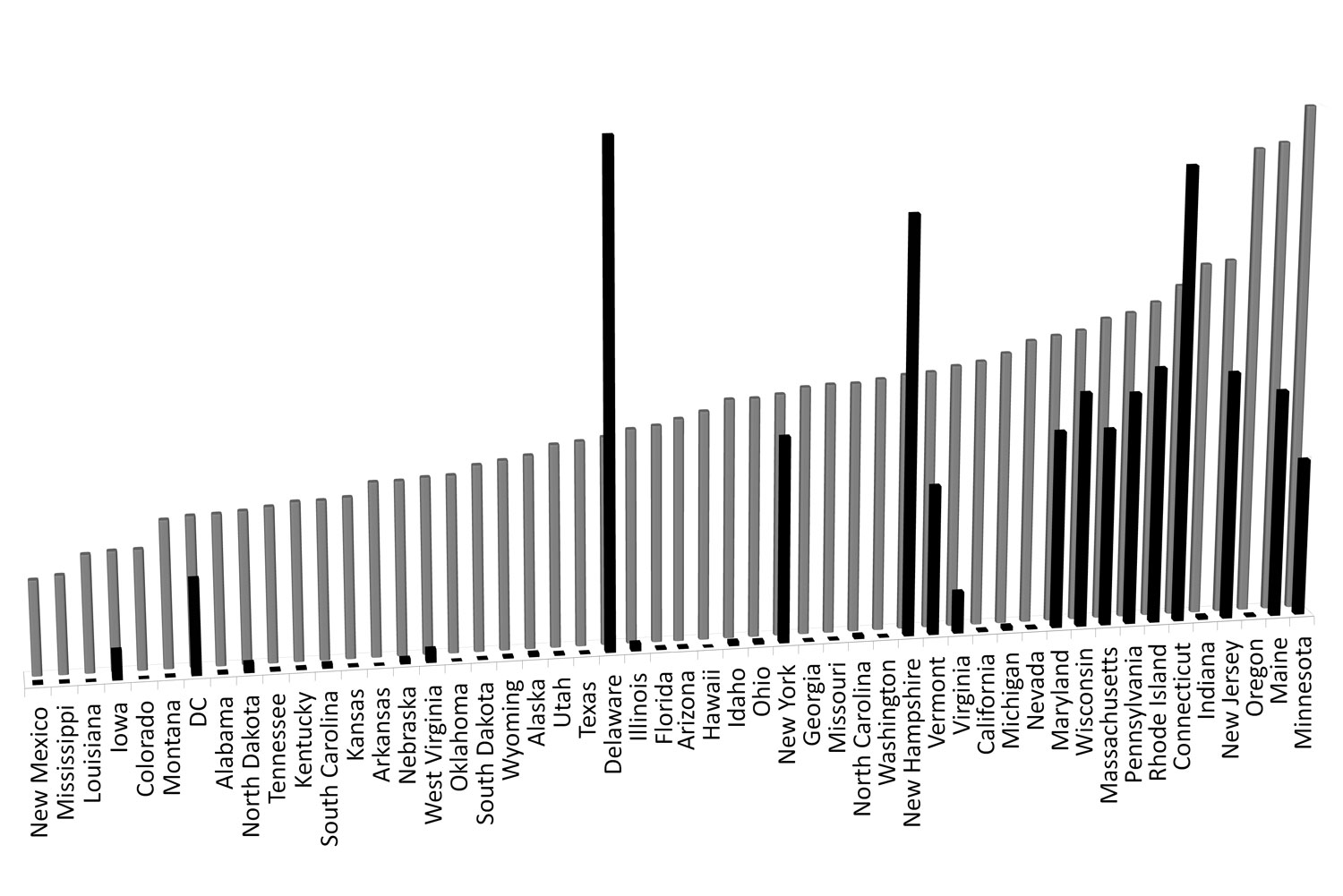 gray bars. Observe how the states with